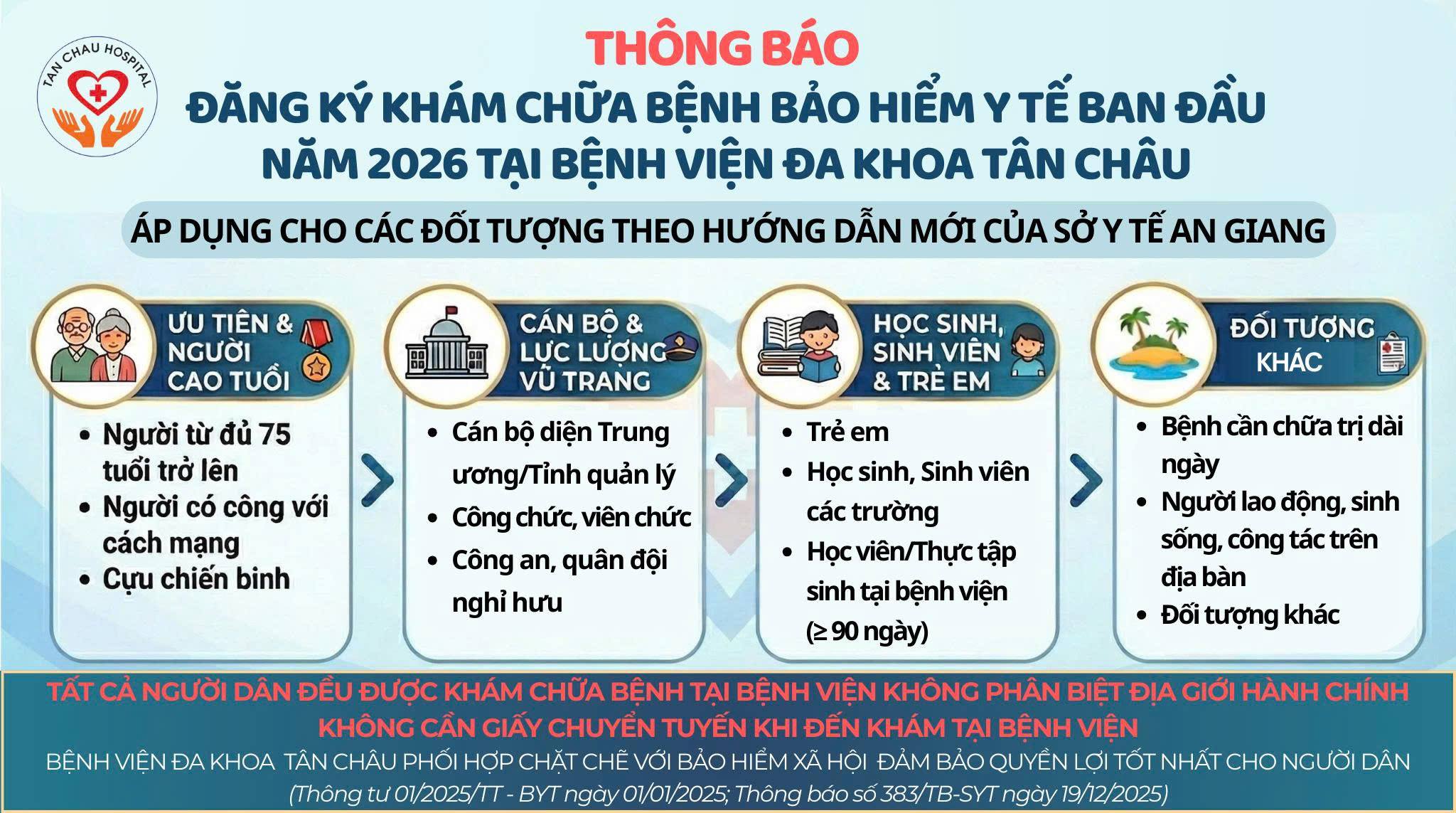 THÔNG BÁO VỀ VIỆC KHÁM CHỮA BỆNH (BHYT) TẠI BỆNH VIỆN ĐA KHOA TÂN CHÂU MÀ KHÔNG CÂN GIẤY CHUYỂN TUYẾN
